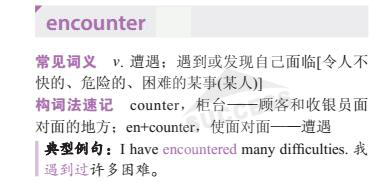 導(dǎo)讀:本期單詞encounter ( v 遭遇,遇到或發(fā)現(xiàn)自己面臨)