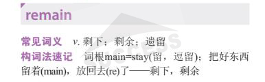 導讀:本期單詞remain ( v 剩下;剩余;遺留 )