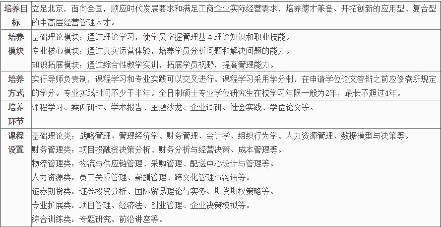 北京物資學院于2010年獲工商管理碩士(MBA)專業(yè)學位授予權,學校成立了專門培養(yǎng)機構MBA教育中心,在學校研究生部統(tǒng)一指導下進行MBA專業(yè)學位教育及管理工作,以服務社會,培養(yǎng)符合時代發(fā)展要求的工商企業(yè)管理精英和骨干為主要目標。MBA的培養(yǎng)將充分發(fā)揮我校學科優(yōu)勢和特色,結合社會發(fā)展趨勢和企業(yè)實際經營需要,側重對MBA學員進行管理實踐與應用方面的訓練,培養(yǎng)學員良好的專業(yè)素養(yǎng)和職業(yè)道德,掌握堅實的基礎理論知識,具備寬廣的現代管理、經濟及相關法律知識,了解當代中國經濟、技術與社會發(fā)展的新趨勢和現代管理理論的新發(fā)展,能夠勝任工商企業(yè)和經濟管理等部門的管理工作。