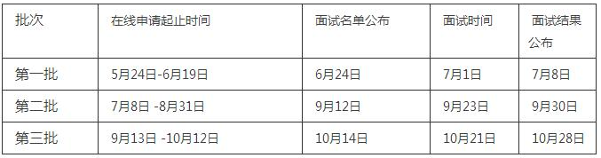 批次在線申請(qǐng)起止時(shí)間面試名單公布面試時(shí)間面試結(jié)果公布