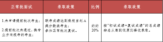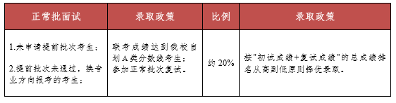 (1) 面試資格:聯(lián)考成績達到我校自劃 A 類分數(shù)線的考生可根據(jù)情況申請正常批面試。正常批面試名額占錄取總名額的約 20%。