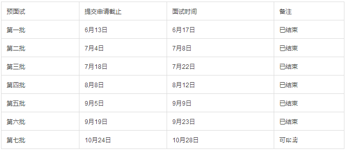 2.資料填寫完整后選擇可以參加的批次進(jìn)行提交,預(yù)面試時間安排如下: