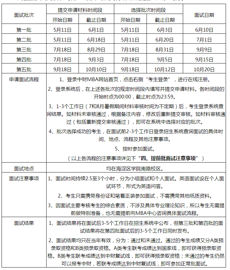 中央財(cái)經(jīng)大學(xué)MBA項(xiàng)目致力于培養(yǎng)具備全球視野和創(chuàng)新能力,擁有金融財(cái)務(wù)優(yōu)勢,積極承擔(dān)社會責(zé)任的領(lǐng)導(dǎo)者。中央財(cái)經(jīng)大學(xué)MBA是國內(nèi)最具競爭力和影響力的MBA項(xiàng)目之一,依托學(xué)校良好的社會聲譽(yù)和品牌價(jià)值,整合全校優(yōu)質(zhì)資源,注重發(fā)揮財(cái)經(jīng)學(xué)科特色和師資優(yōu)勢,取得了豐碩的辦學(xué)成果和廣泛的社會認(rèn)可。2011年通過AMBA認(rèn)證,成為中國大陸地區(qū)第8家、北京地區(qū)首家AMBA認(rèn)證會員;2014年,通過AMBA再認(rèn)證,認(rèn)證有效期為5年;2017年,通過CAMEA認(rèn)證,認(rèn)證有效期為5年,并列第15位國內(nèi)高校通過認(rèn)證。同時(shí),中央財(cái)經(jīng)大學(xué)MBA項(xiàng)目多年多次被新華網(wǎng)、央廣網(wǎng)、騰訊網(wǎng)、新浪網(wǎng)、中國網(wǎng)、世界經(jīng)理人等媒體評為品牌影響力MBA院校、創(chuàng)新力MBA項(xiàng)目、品牌知名度MBA院校、表現(xiàn)最佳MBA院校、最受雇主青睞MBA項(xiàng)目和綜合實(shí)力突出商科教育品牌等榮譽(yù)稱號。為選拔更多優(yōu)質(zhì)生源,同時(shí)也為考生增加自主選擇的機(jī)會,我校擬在2019年仍然采取提前批面試和正常批面試相結(jié)合的原則,并且不提前設(shè)定提前批面試和正常批面試人數(shù)分布的固定比例。具體細(xì)則如下: