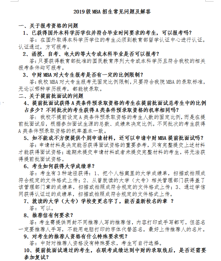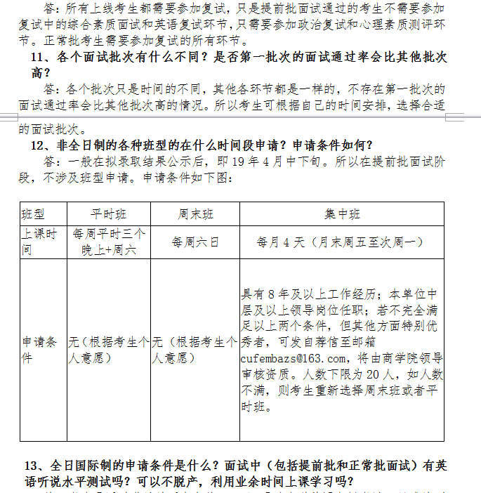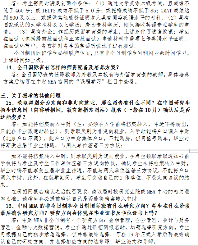 關(guān)于全日國際班的申請條件請參看附件中“2019級MBA招生常見問題及解答”中的問題13
