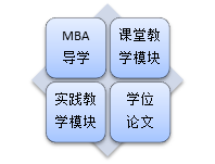 攻讀工商管理碩士學(xué)位研究生期間,需要獲得的學(xué)分不少于45學(xué)分。首都經(jīng)濟(jì)貿(mào)易大學(xué)MBA教育課程分為四大模塊,分別為MBA導(dǎo)學(xué)、課堂教學(xué)模塊、實(shí)踐教學(xué)模塊和學(xué)位論文(如圖1所示)。MBA導(dǎo)學(xué)2學(xué)分,必修課25學(xué)分,選修課不少于18學(xué)分。