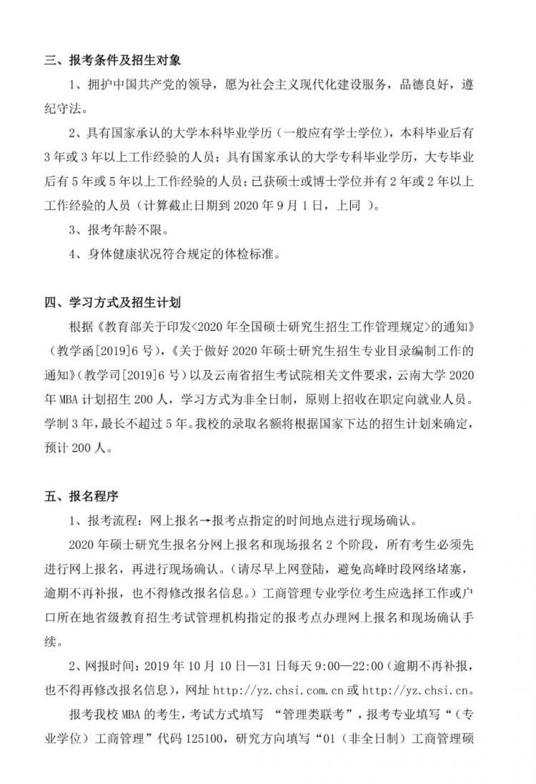 以上就是“2020年云南大學MBA(工商管理)招生簡章”的全部內容!祝您考研成功!