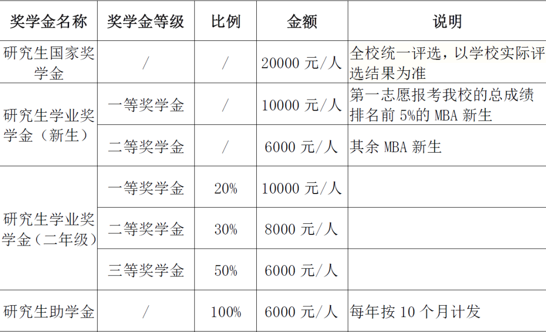 第一志愿報考華南師范大學(xué)MBA且被錄取的考生,按聯(lián)考成績高低給予一定的獎學(xué)金。