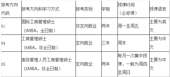 管理學(xué)院2022年計(jì)劃面向全國(guó)招收工商管理碩士學(xué)位研究生(招生計(jì)劃人數(shù)待定,請(qǐng)留意后續(xù)更新),包括工商管理碩士(MBA,非全日制)、國(guó)際工商管理碩士(IMBA,全日制)、高級(jí)管理人員工商管理碩士(EMBA,非全日制)三個(gè)報(bào)考方向。