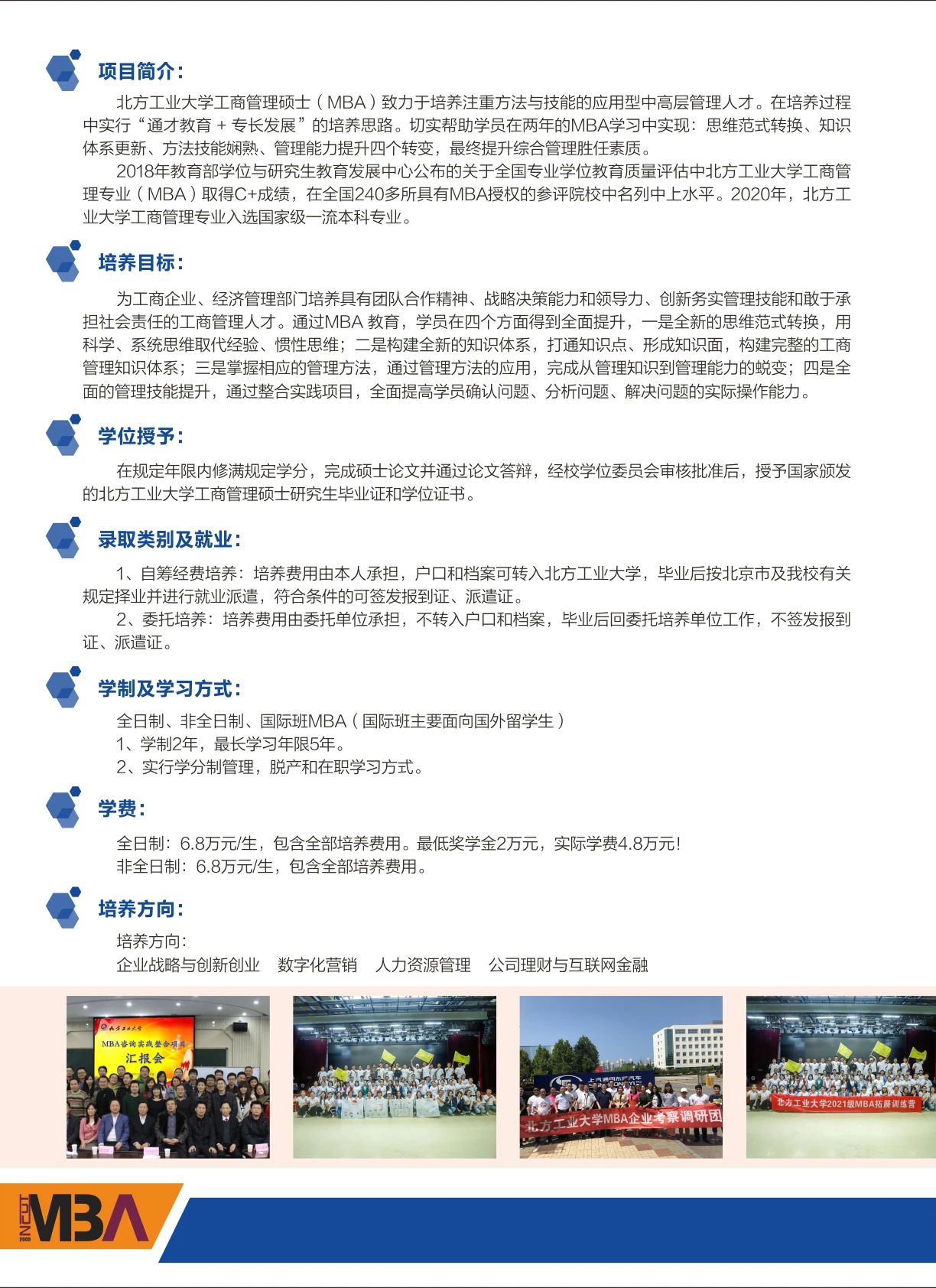 導讀:北方工業(yè)大學工商管理碩士(MBA)于2009年經(jīng)國務院學位委員會(學位辦[2009]35號)批準設立,2010年開始招生。為保障MBA教育工作有序、高效運轉(zhuǎn),立足我校實際,借鑒其他院校經(jīng)驗,特設立“北方工業(yè)大學經(jīng)濟管理學院MBA教育中心”。
